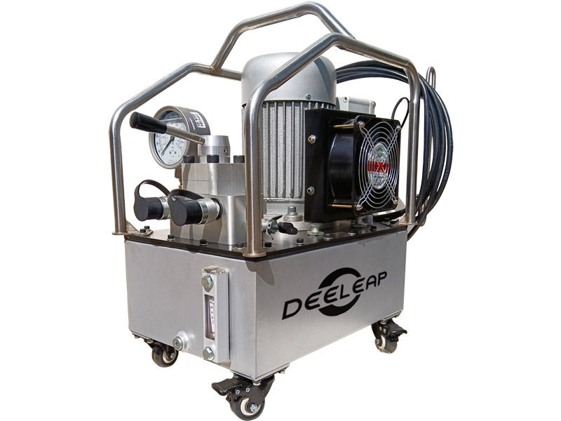 输出压力(mpa/psi):直接影响千斤顶的顶升能力,需匹配液压泵压力与千斤顶的额定负载。deeleap电动液压泵额定压力70兆帕,配有外置调压阀,≤70mpa可根据需要调整使用。